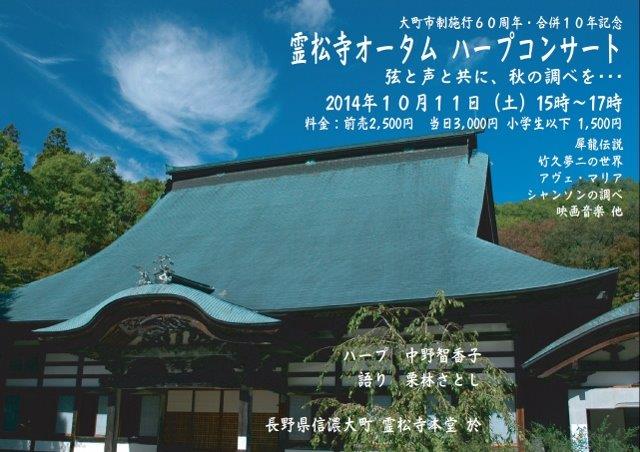 大町市制施行60周年・合併10年記念 霊松寺オータムハープコンサート